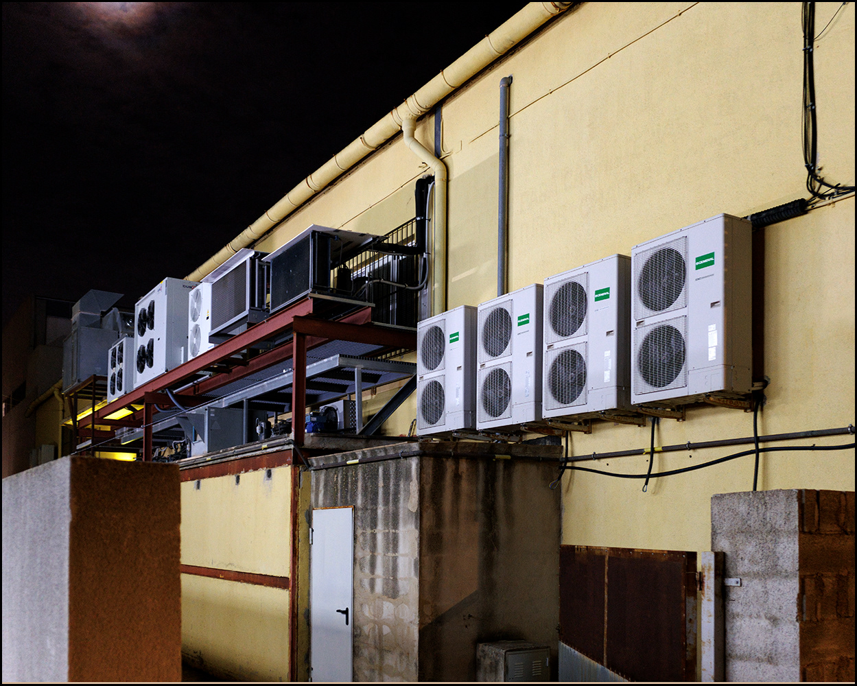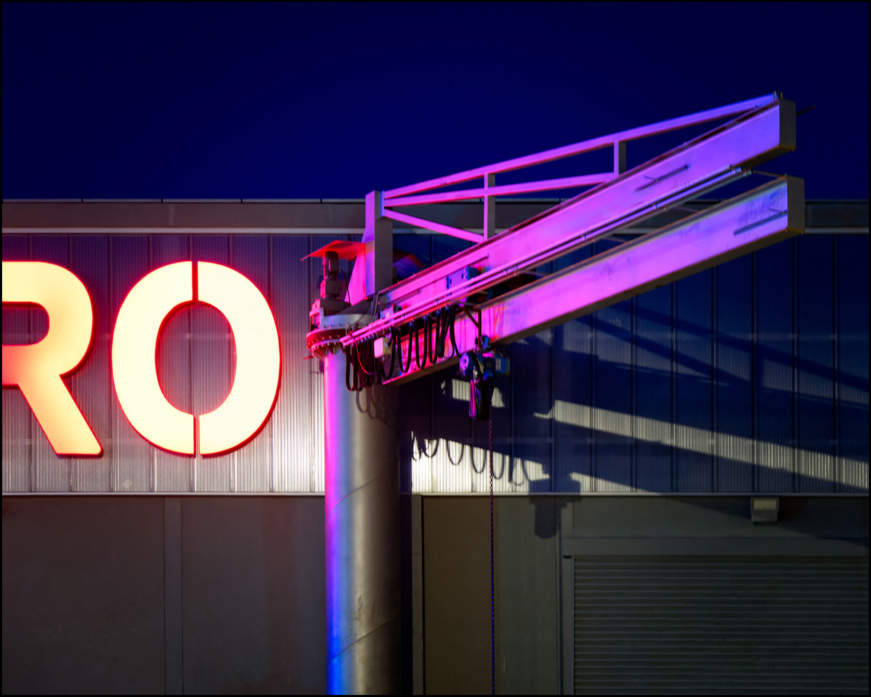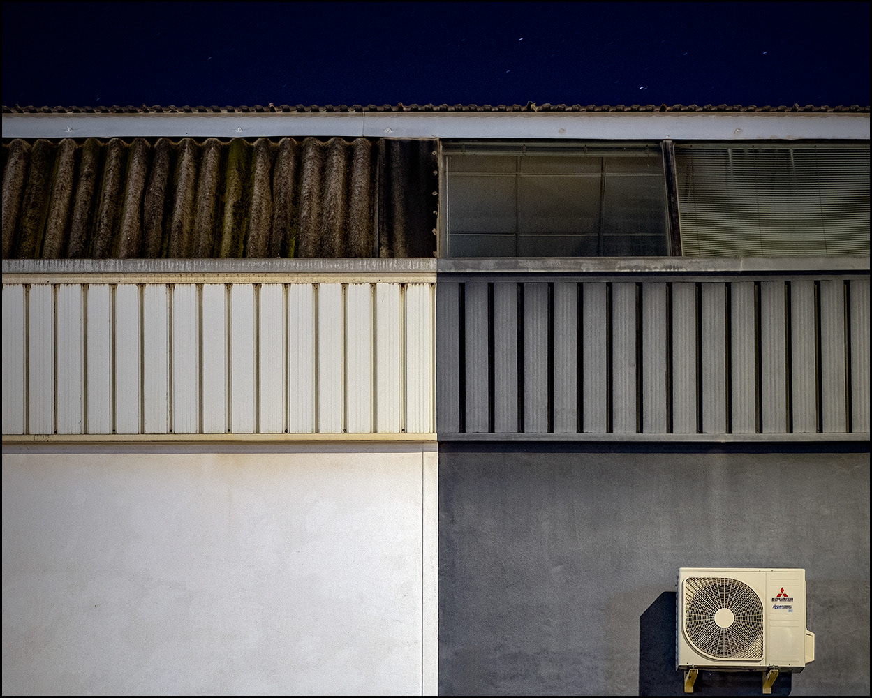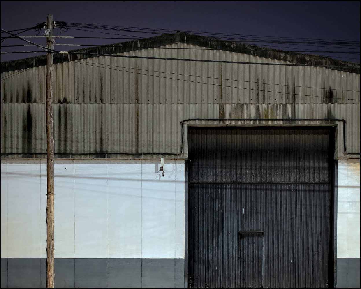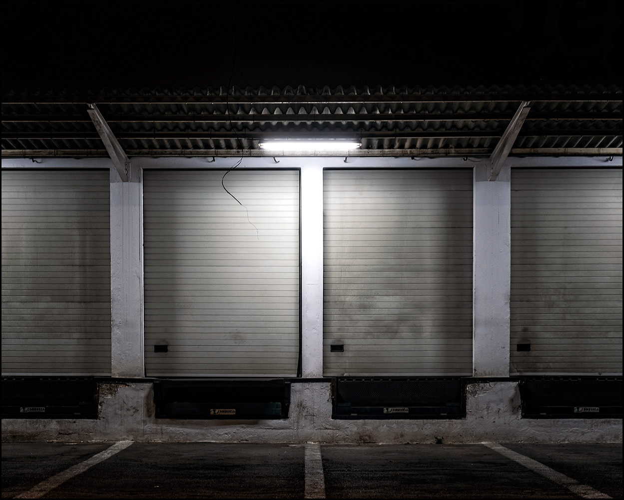 Nightpol — After the Last Shift In darkness, industrial zones lose their productive function and reveal a different identity. Anonymous façades, unlit signs and idle machines gain a silent, almost theatrical presence. Artificial light traces geometries and textures unnoticed by day, turning utilitarian spaces into landscapes filled with mystery and stillness.