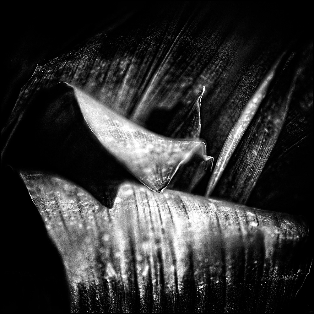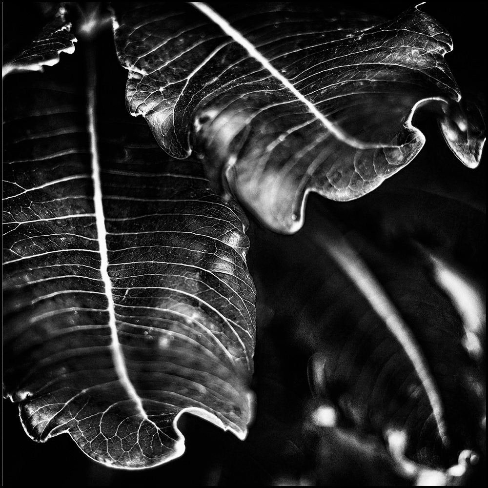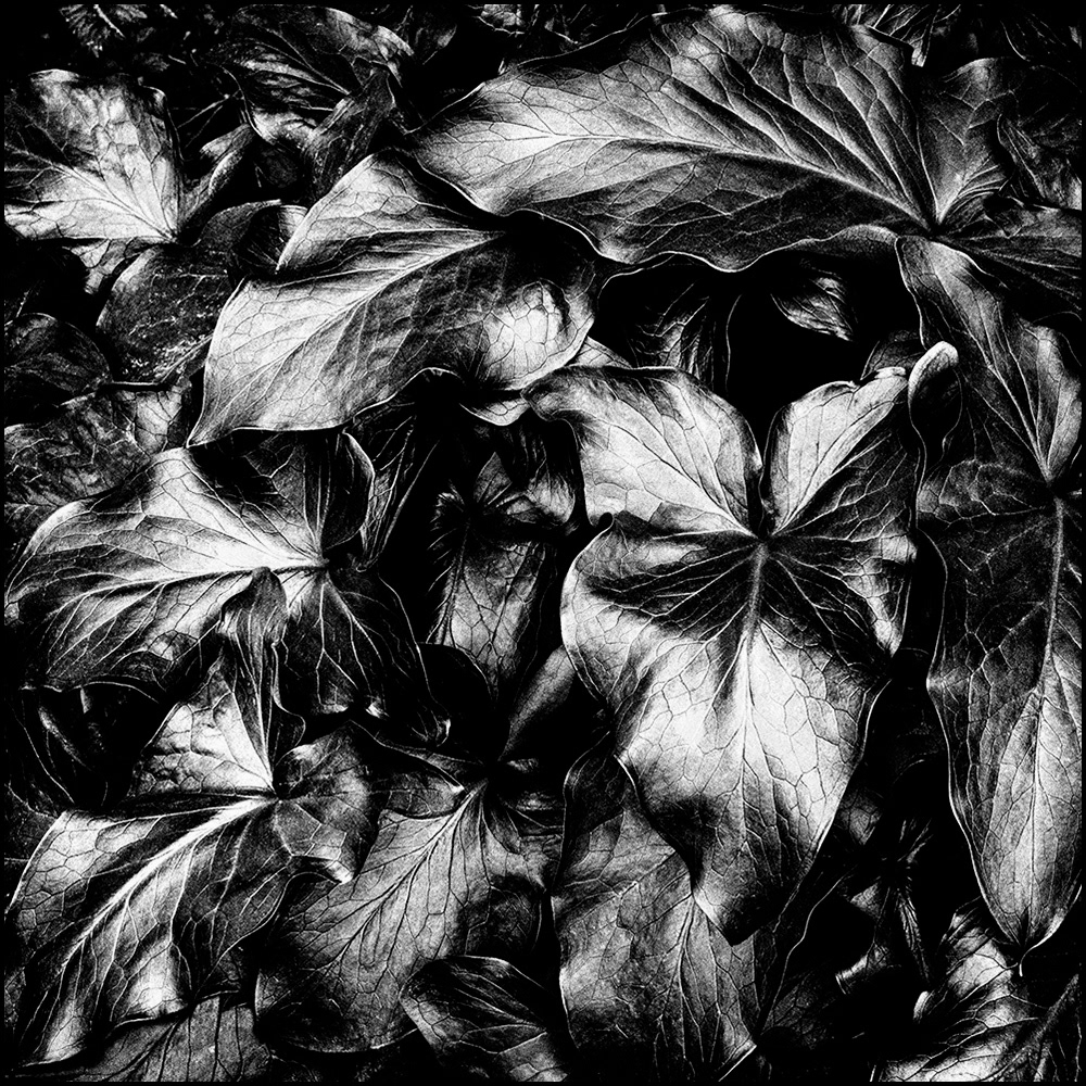In Obsidian Leaves, the fragile surface of nature turns into mineral matter. The leaves, stripped of color, become dense, almost geological presences—echoes of time and decay. The photographic gaze penetrates the organic to reveal the sculptural, transforming light and shadow into matter, as if each leaf were carved from obsidian.