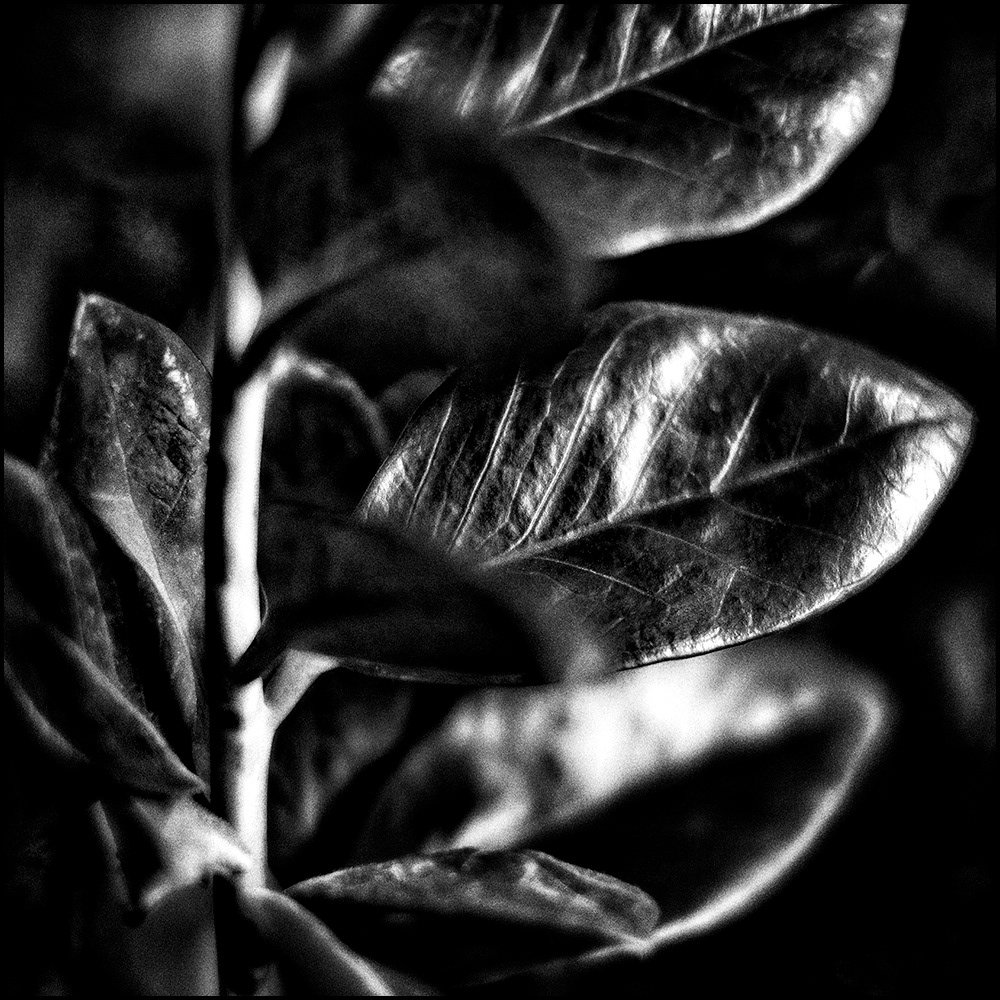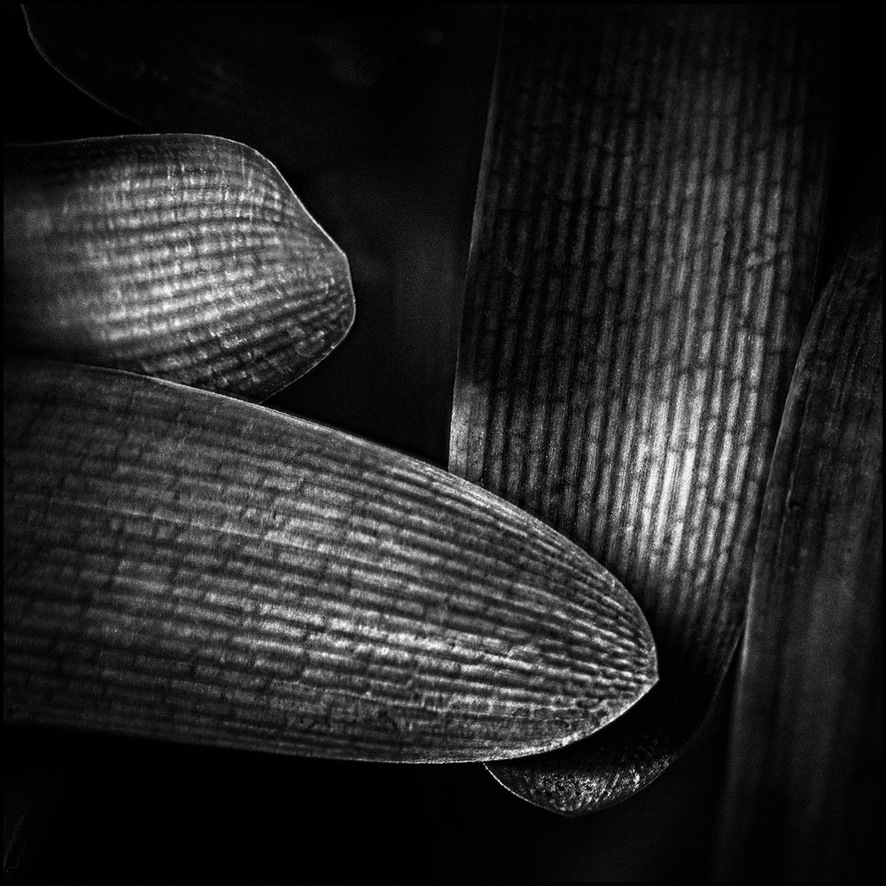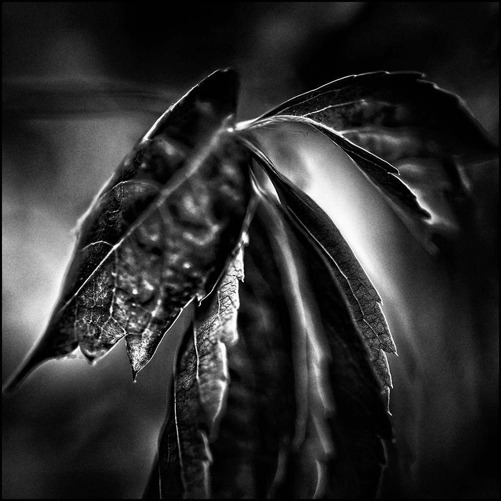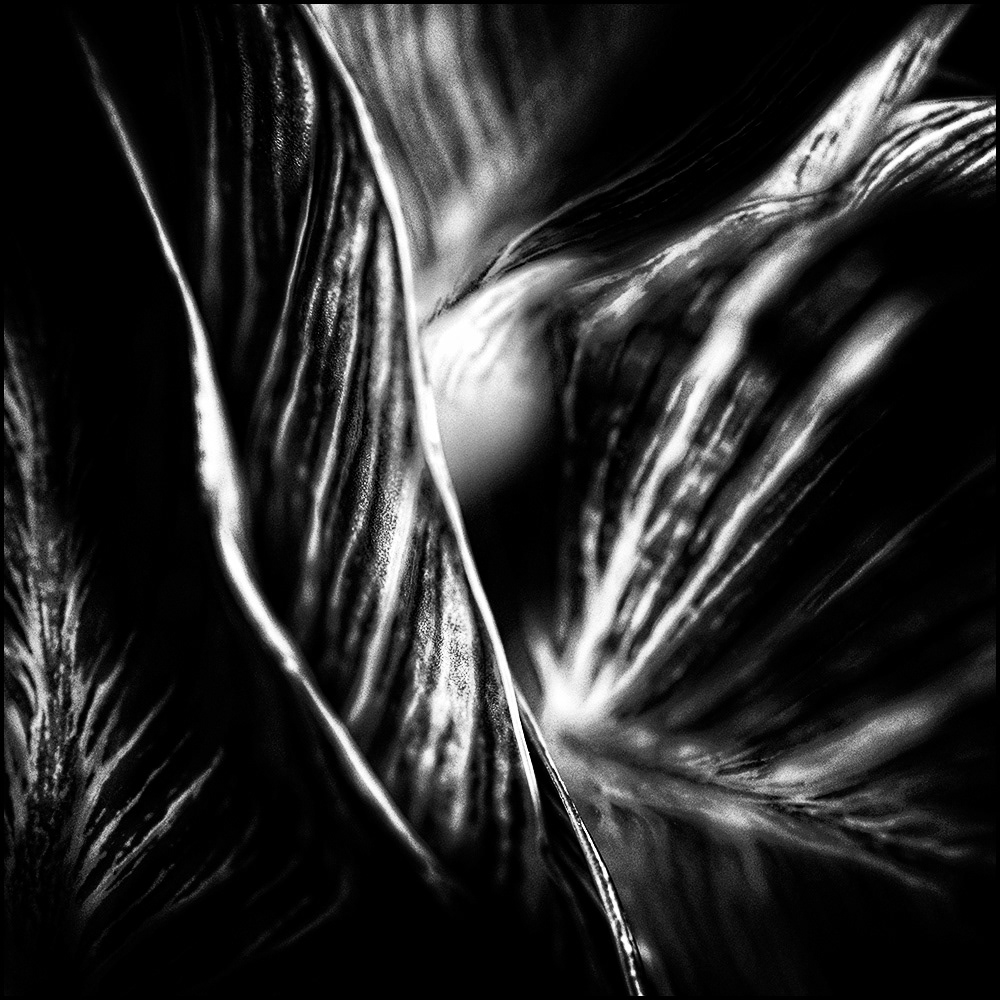 In Obsidian Leaves, the fragile surface of nature turns into mineral matter. The leaves, stripped of color, become dense, almost geological presences—echoes of time and decay. The photographic gaze penetrates the organic to reveal the sculptural, transforming light and shadow into matter, as if each leaf were carved from obsidian.