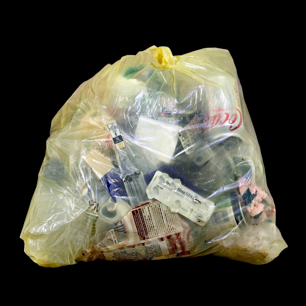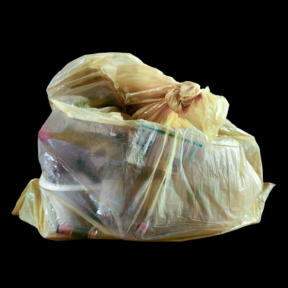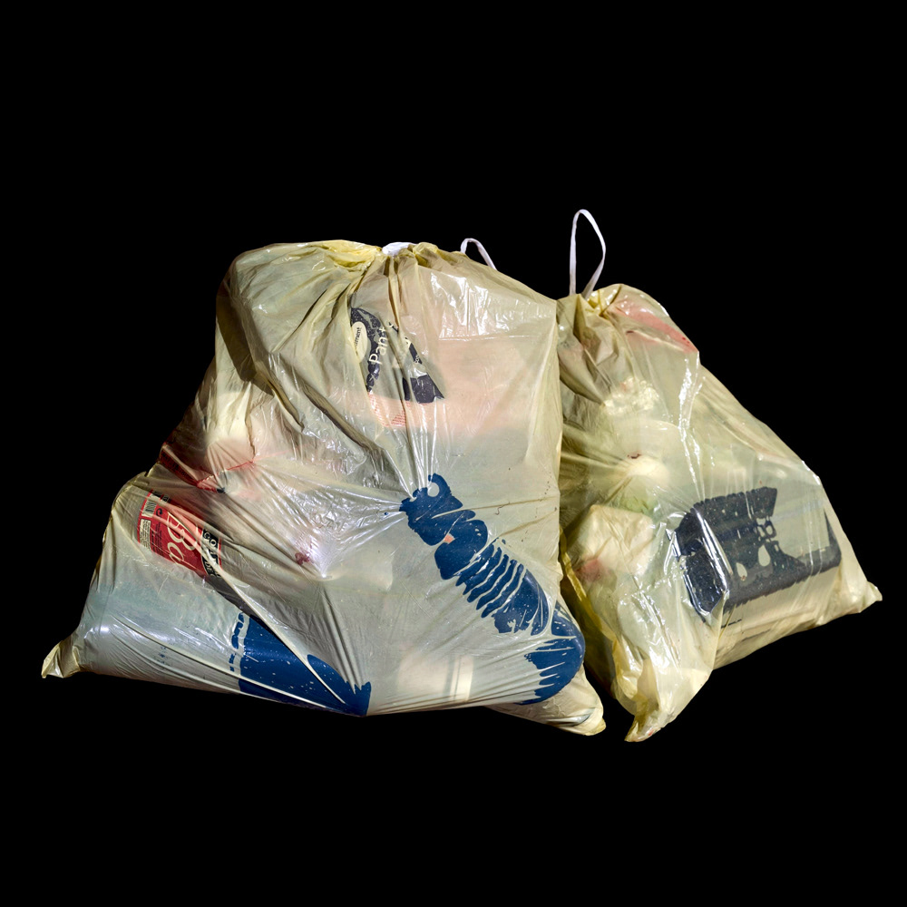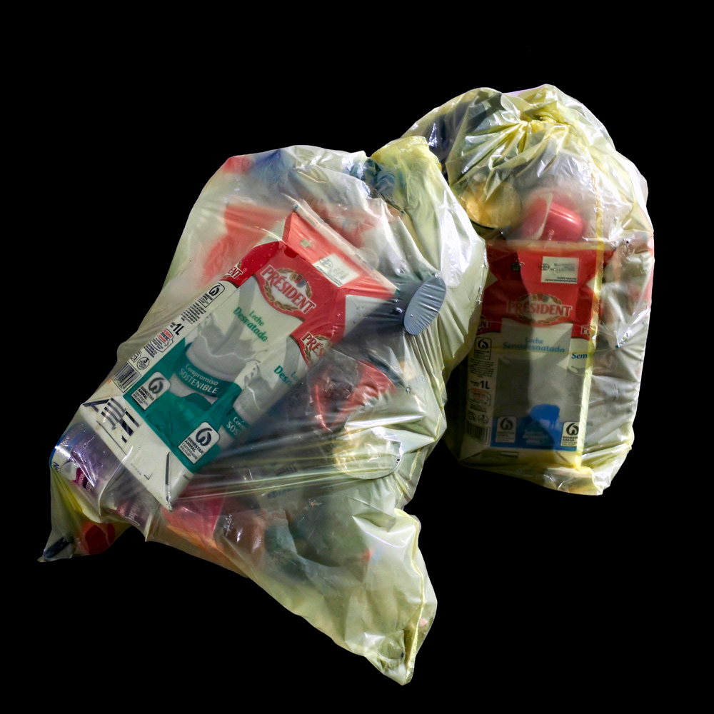 YELLOW emerges from night walks where yellow garbage bags, under artificial light, reveal traces of a consumption that still defines our society. Observed as strange compositions—fragments of what was once useful—plastic becomes a pictorial surface. Transparent and ordinary, waste is transformed into image, suspended between attraction and discomfort.